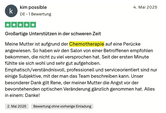 Gerade müssen Sie so viele Entscheidungen treffen – Behandlung, Termine, Alltag organisieren. Haarersatz sollte nicht noch eine Last sein.